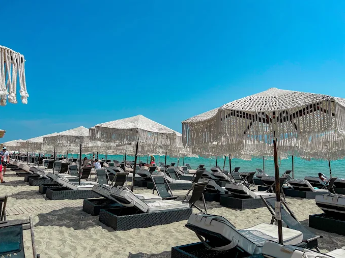 Nice beach with a great music, delicious food, comfortable beds and a beautiful view, the sandy beach and the crystal-clear water.