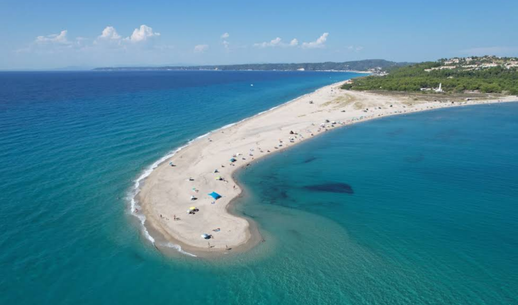 Possidi Beach is one of the most unique and picturesque beaches in Kassandra, famous for its long sandy coastline and the stunning sand spit at Cape Possidi. The beach offers crystal-clear turquoise waters and a peaceful, natural atmosphere, making it ideal for travelers who prefer open space and unspoiled scenery. While some areas are organized with sunbeds and beach bars, much of the beach remains wild and tranquil. The iconic lighthouse and the narrow strip of sand stretching into the sea create a breathtaking landscape, especially at sunset.